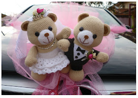 Made him a couple Wedding Bears for his car decoration. Here it is :